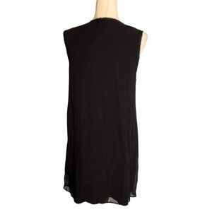 Elie Tahari Sleeveless Black Shift Dress Metal Ring Circles Sz M Silk Short