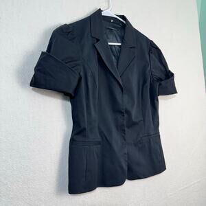 Crafted from high-quality materials, this short -sleeve blazer is designed for both comfort and durability. The versatile black color makes it a perfect addition to any outfit, whether for professional settings or chic casual ensembles.