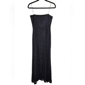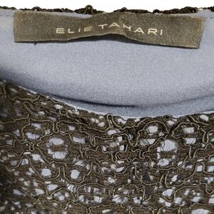 Elie Tahari Collection Lined Blue & Black crochet Dress. Features lined top & skirt, thin spaghetti strap top style, zip side and sleeveless.