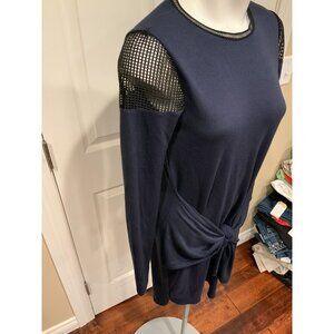 Elie Tahari Sport Blue Soft Jersey Dress w/ Twisted front & Mesh Shoulders Sz XS