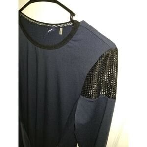 Elie Tahari Sport Small Dress Navy Blue Front Tie Long Sleeve Net Rayon Athletic