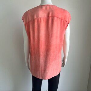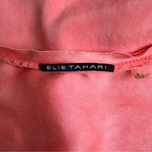 This Elie Tahari blouse in a vibrant orange hue features a relaxed fit and elegant design, perfect for both casual and office settings. The blouse offers a comfortable and stylish look with its flowing fabric and polished finish.