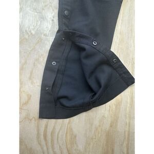 The product is a pair of Elie Tahari stretch twill snap side pants in black, size M. These dress pants are designed for women and feature a snap closure for a stylish and comfortable fit. The stretch fabric allows for ease of movement, making them suitable for various occasions. The twill fabric provides a durable and stylish finish, adding a touch of sophistication to any outfit. Perfect for pairing with a blouse and heels for a chic and polished look. There is no size tag but these are measuring a 30” waist, which is a medium