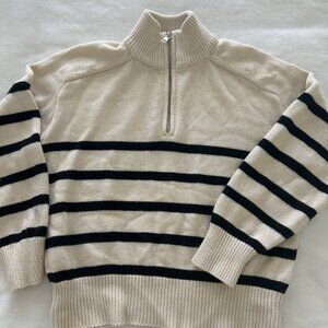 Elie Tahari Sweater Cream Navy Striped 1/4 Zip Pullover Coastal Preppy Size M