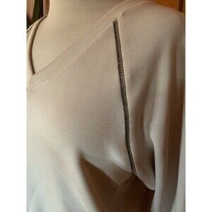 Elie Tahari Sweatshirt Sz Medium Supersoft Cream Metallic Trim Minimalist Luxury