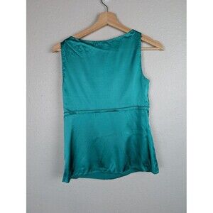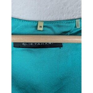 Elie Tahari Tank Top Womens XS Teal Blue Silk Blend Chain Detail Sleeveless