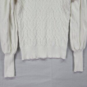 Elie Tahari Textured Pullover Sweater Size Large White Puff Extra Long Sleeve