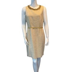 Elie Tahari Tweed Dress Size 12 Beaded Neckline Elegant Sheath Work Party