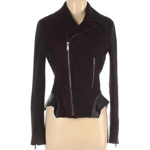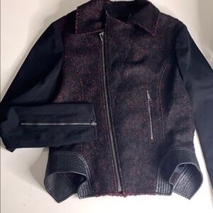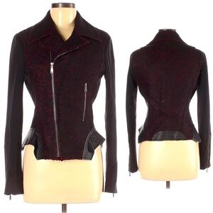 Elie Tahari Tweed Vampire’s Wife Moto ZIP jacket blazer red black size 6