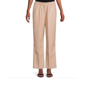 Elie Tahari Vegan Leather Wide Leg Pants Pull On Faux Leather M Mushroom Tan NWT