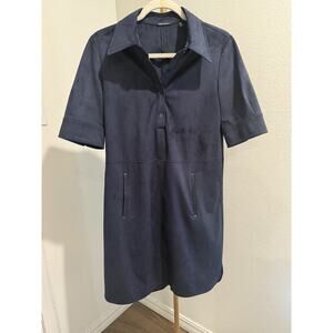 Elie Tahari Vegan Suede Popover Navy Shirt Dress Size 4 Womens Soft