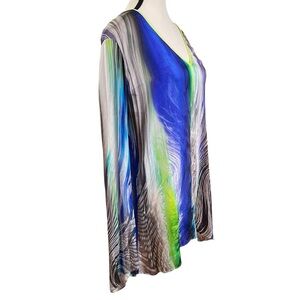 Elie Tahari Vibrant Green, Blue and Cream Silk Tunic Blouse