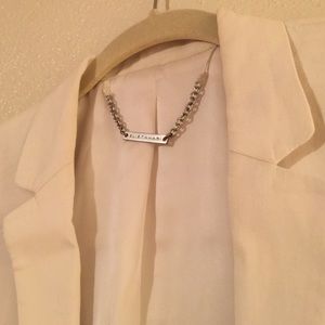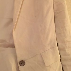 Love this chic, white blazer. Looks great over a dress for the office or you can pair it with jeans for a more casual look. Worn but still lots of love and life left in this jacket. Only dry cleaned. One small mark on left side shown in last picture. Make me an offer for this great staple piece!👌🏻
