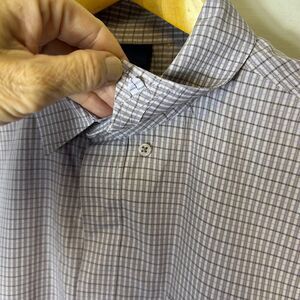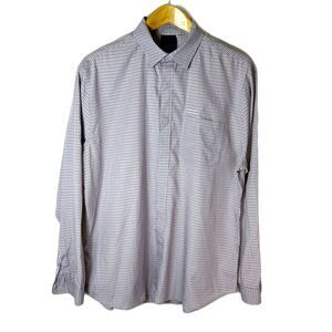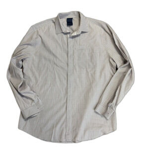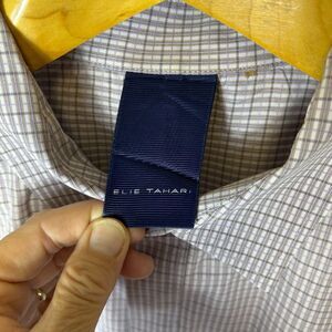 Elie Tahari White Lilac Gray Blue Check Cotton Hidden Button LS Dress Shirt XL