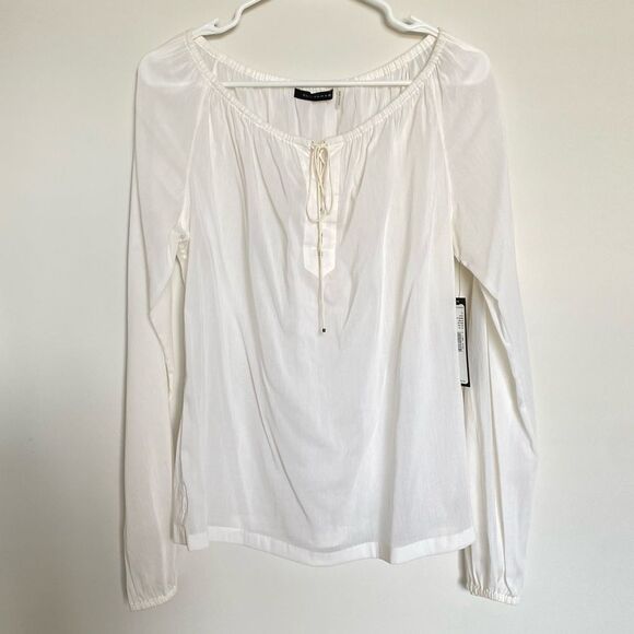 Elie Tahari White Long Sleeve Peasant Workwear Blouse Tie Front Size Large NWT