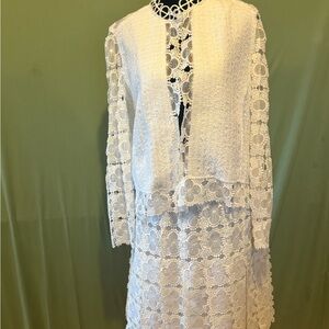 Elie Tahari White Wedding Suit with Intricate Lace