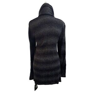 Elie Tahari Woman's Knit Open Cardigan Removable Scarf Grey Black Long Sleeves Size Large