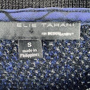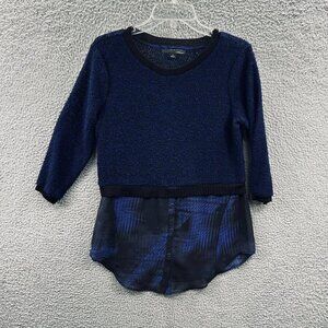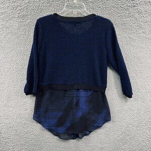 Elie Tahari Women Knit Sweater Small Blue 3/4 Sleeve Pullover Sheer Bottom