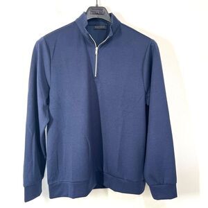 Elie Tahari Womens 1/4 Zip Pullover Womens Large Navy Viscose Blend Sweatshirt