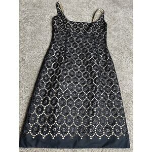 Elie Tahari Womens Black Floral Midi Dress Champagne Lined Size 4 Small