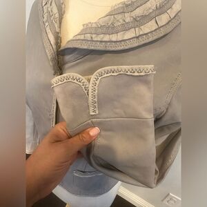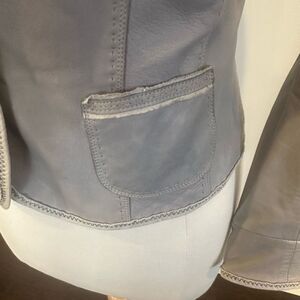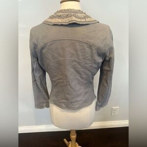 Elie Tahari Women's Gray Ruffled Leather Jacket Size Small Petite -color is a pale gray/blueish