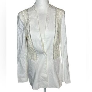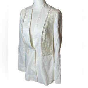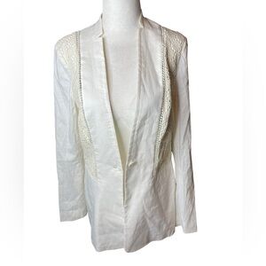 Elie Tahari Women’s Linen Blazer, White with cream crochet, NWT, Size 2 crisp