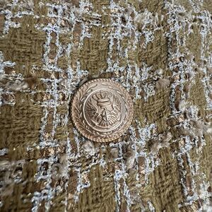 Elie Tahari Womens Long Tweed Jacket M Metallic Gold Crest Old Money Uptown Chic