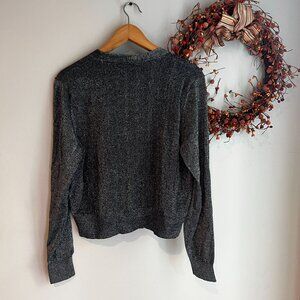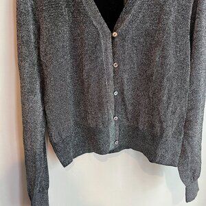 Elie Tahari Womens Metallic Glam Sparkly V-Neck Cardigan XTRA-LARGE Black