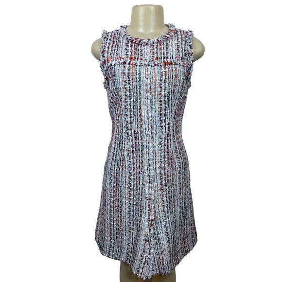 Elie Tahari Women's Multicolor Sleeveless Shift Dress Sz 6 is a chic, contemporary dress. Crafted from Polyester and Acrylic, it's perfect for those looking for style and comfort.