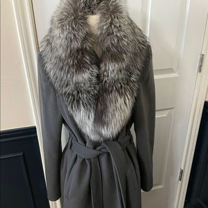 Elie Tahari Women's Sasha Wool Wrap Coat with Real Fur Collar like new Xlarge