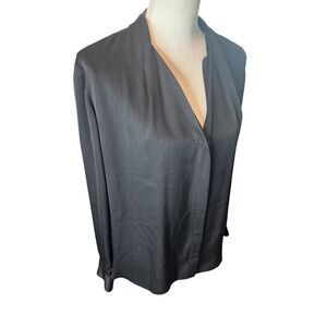 Elie Tahari Womens Silk Blouse L Black V Neck High End Designer Capsule