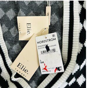 Elie Tahari Women's Size L Diamond Pattern Black Ivory Cardigan Sweater NWT