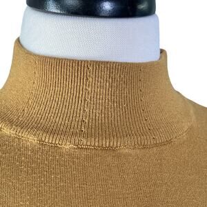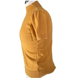 Elie Tahari Women's Sweater Top SM Fitted Mockneck Short Sleeve Mustard Yellow