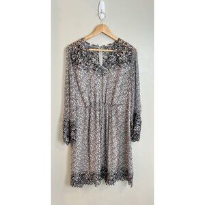 Elie Tahari Women’s Sz Large Tally Gray Silk Floral Embroidered Trim Dress