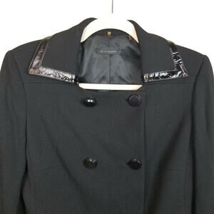 Elie Tahari Womens Virgin Wool Blazer Leather Trim Size 6 Classic Dark Academia
