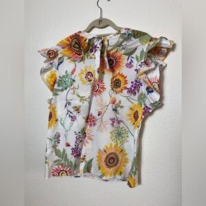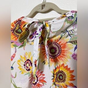 Elie Tahari Womens White & Multi Color Floral Blouse Size Large