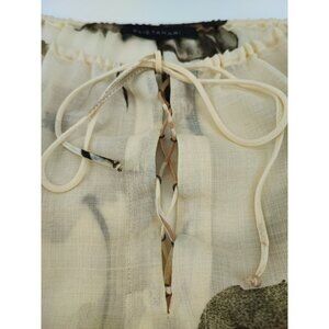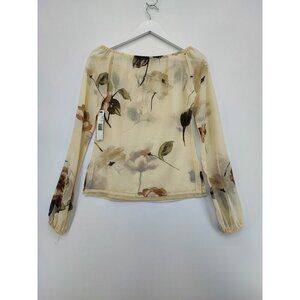 Elie Tahari Women's Zoe Cream Multi Peasant Floral Print Sheer Blouse Size XS