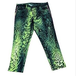 Elie Tahari green black snake reptile crocodile print cropped pants business 6US