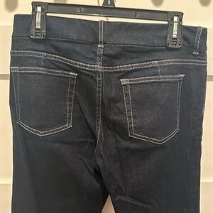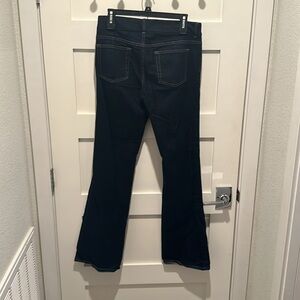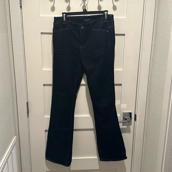 Very flattering skinny leg with flared leg dark blue Elie Tahari Joey jeans, size 10