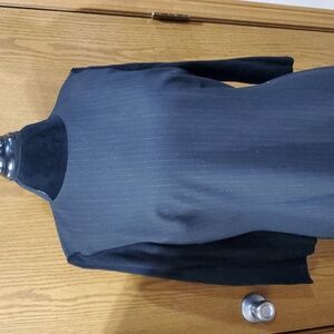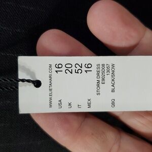 new with tags. no issues size 16 black and white pinstriped dress ruffle hem and lined. merino wool knit sleeves zip back retailed 448.00 storm dress in black/snow