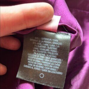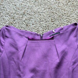 This purple dress is perfect for any occasion. Its sleek design offers a flattering fit, making it a must-have in your wardrobe. Wool blend. Size 10. When laying flat pit to pit is 17.5, waist 15.5, length 40. Lined.