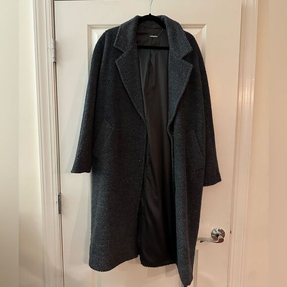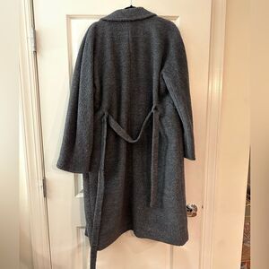 Elie Tahari Metallic Gray Wool Trench Coat size Large EUC BEAUTIFUL coat similar to the famous Max Mara coat.