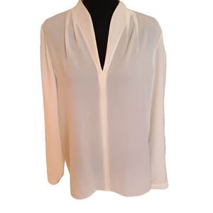 Elie Tahari Soft White Split Neckline Long Sleeve Blouse Size M