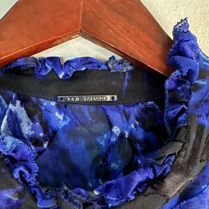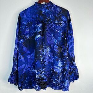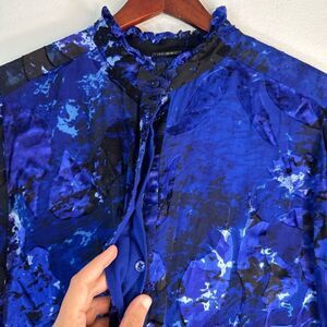 Elie Tahari Womens Teddie Printed Ruffle Neck Blouse XL Mod Fairycore Silk Blend