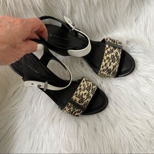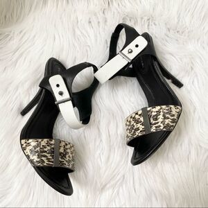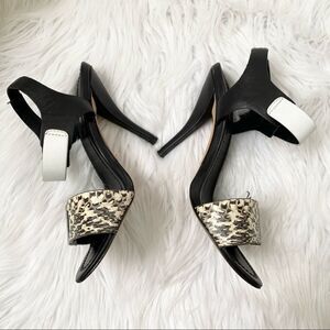 Elie Tahari Black White Snakeskin Heel Sandals 6.5
