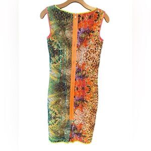 Elie Tahari Sz 2 Neon Green Orange Tropical Léopard Mesh Wedding Guest Dress