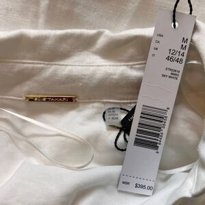 Elie Tahari White Lace Trim Short Sleeved/Collar Linen Lined Shirt Dress NWT-M