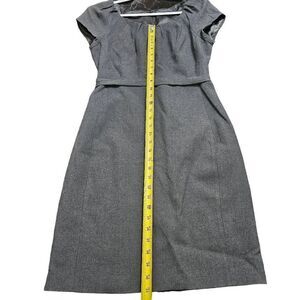 Excellent pre-loved condition gray Elie Tahari wool dress for women, size 6. Exterior 95% wool and 5% elastin and the lining is 95% polyester and 5% elastin materials. Have a belt around the waist, zipper back opening and 5.5" slit on the back.