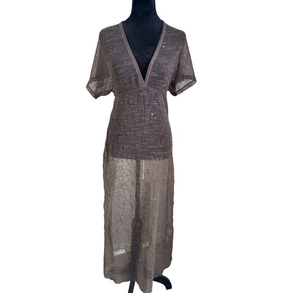 Elif Babydoll Maxi Dress Womens S Mesh Sequins Deep V Festival Goth Grunge Rave
