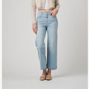 A feminine silhouette wide leg with high-rise jean.
